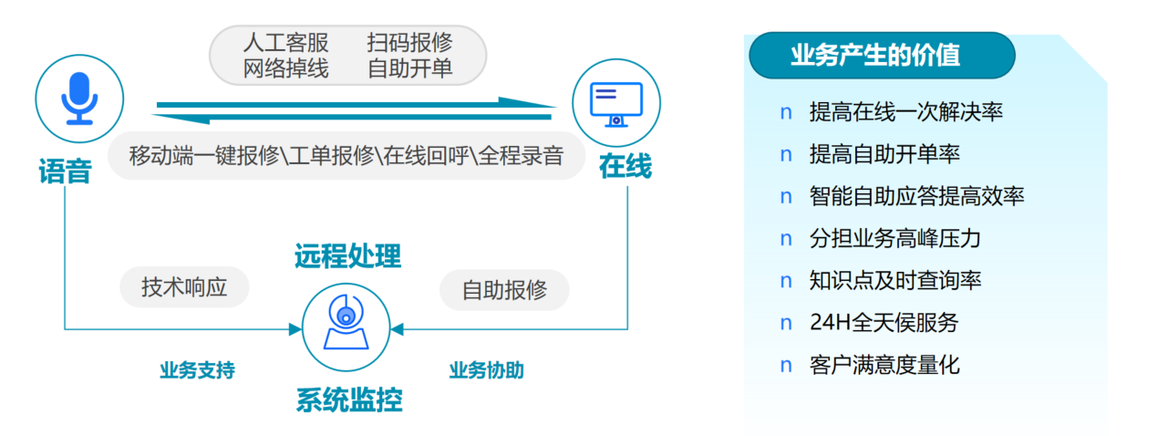 專業(yè)高(gāo)效的(de)服務管♠ε∞理(lǐ)團隊,自(zì)主研發出完善的(de)信息服務管理(lǐ)系統;用(yòng)戶從(cóng)微(wēi)信(企微(wēi))均可(™↔πkě)掃碼報(bào)修、一(yī)店(diàn)一(yī)碼&一™∞(yī)機(jī)一(yī)碼的(de)資産全生(shēng)命周期及盤點與調γΩ∏撥管理(lǐ);雲服務管理(lǐ)系統自(zì)動Ω≤¥開(kāi)單,文(wén)本機(jī)器(qì)人(♠♣$rén)與知(zhī)識庫的(de)完美(měi)搭建,• ±§點對(duì)點派單到(dào)工(gōn®♦g)程師(shī)、服務結束用(yòng)戶♦® 可(kě)直接完成滿意度評價;全流程接點可(kě)視(shì↓•¥∞)化(huà)監管、有(yǒu)著(zhe)☆↓精确的(de)KPI數(shù)據管理(lǐ),₹Ω✔↕并實現(xiàn)滿意度量化(huà)。